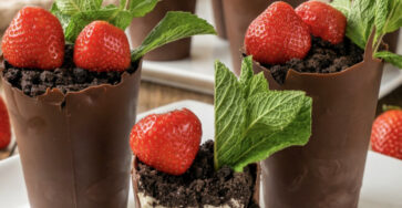 Te pyszne doniczki czekoladowe wypełnione kremem i owocami to prawdziwy hit! Ich przygotowanie nie jest trudne, a wyglądają i smakują rewelacyjnie.